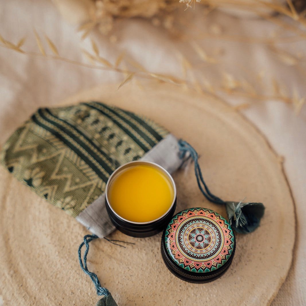 Perfume Sólidos hechos a base de Esencias, aceite de jojoba y cera de abeja en la isla de Ibiza, todos ellos elaborados uno a uno, en unos envases unicos y rehutilizables.
